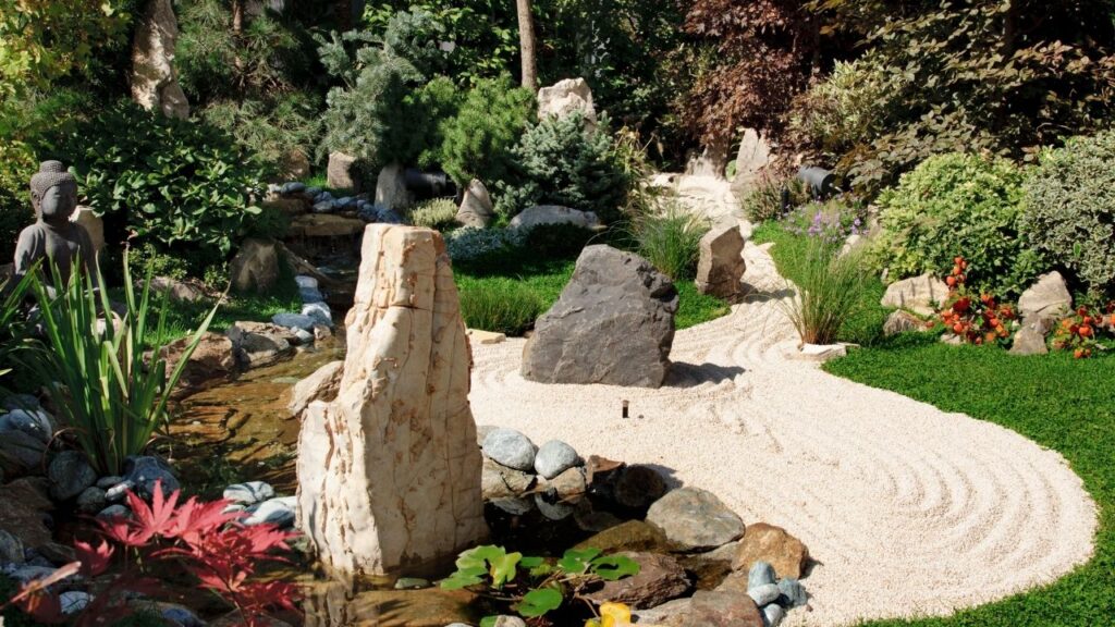 I giardini orientali nel loro estremo fascino ed incanto sono generalmente asimmetrici e composti da elementi a numero dispari, una curiosità è proprio questa, si cerca di inserire oggetti che possano nella loro composizione formare delle figure triangolari.