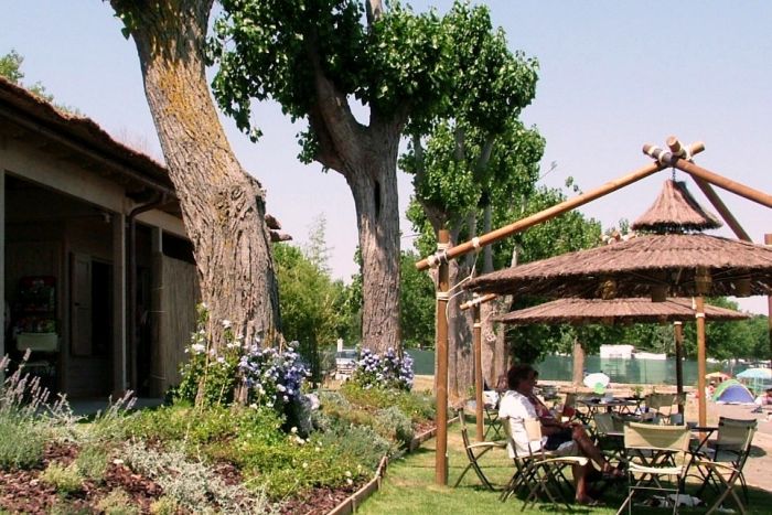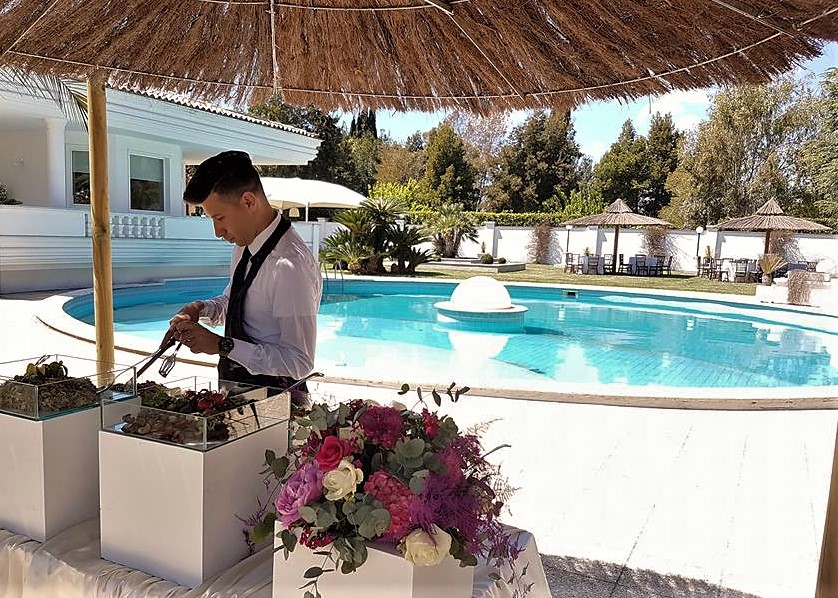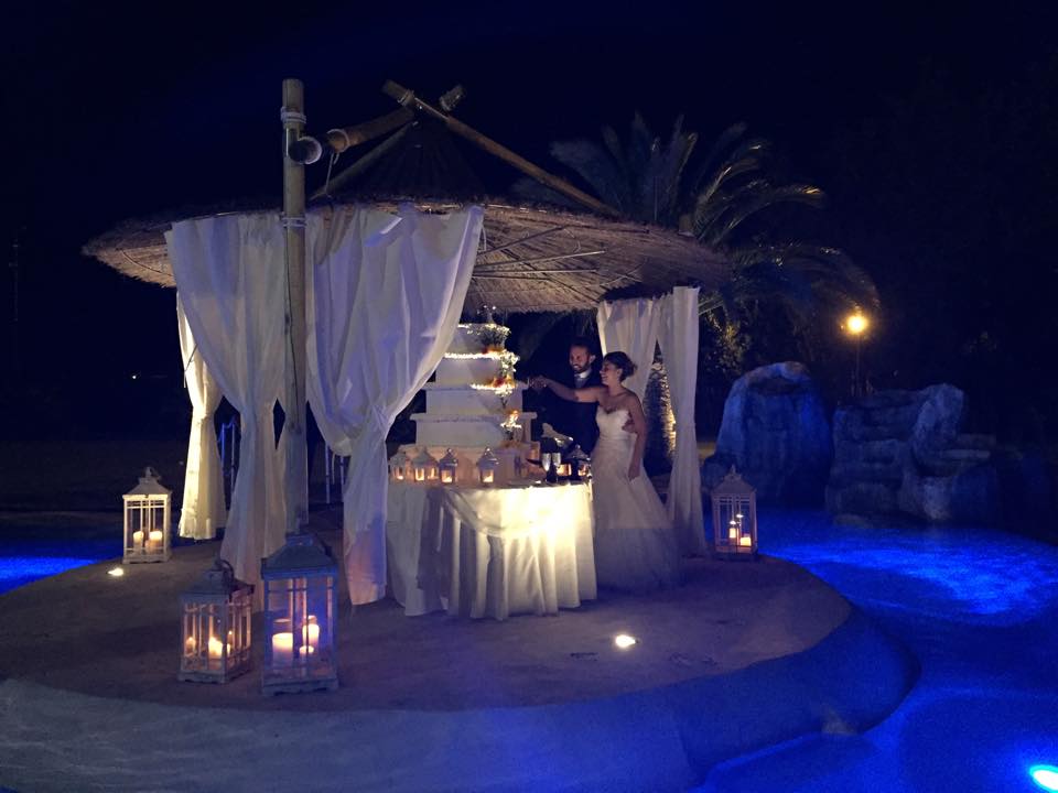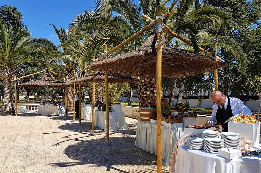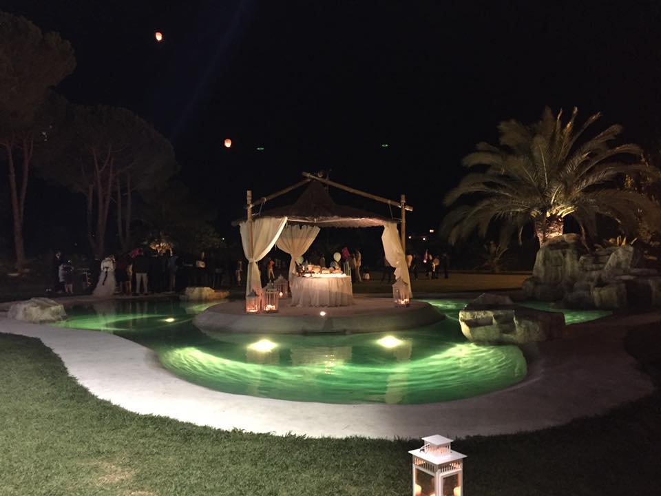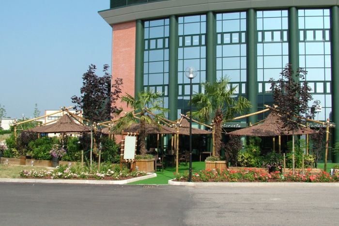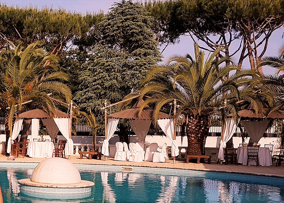 Gazebo Etno-Chic mod. Versilia 400 cm ingombro totale con ombrellone 320 (N°6 Tende in cotone 140 x 300 optional)
