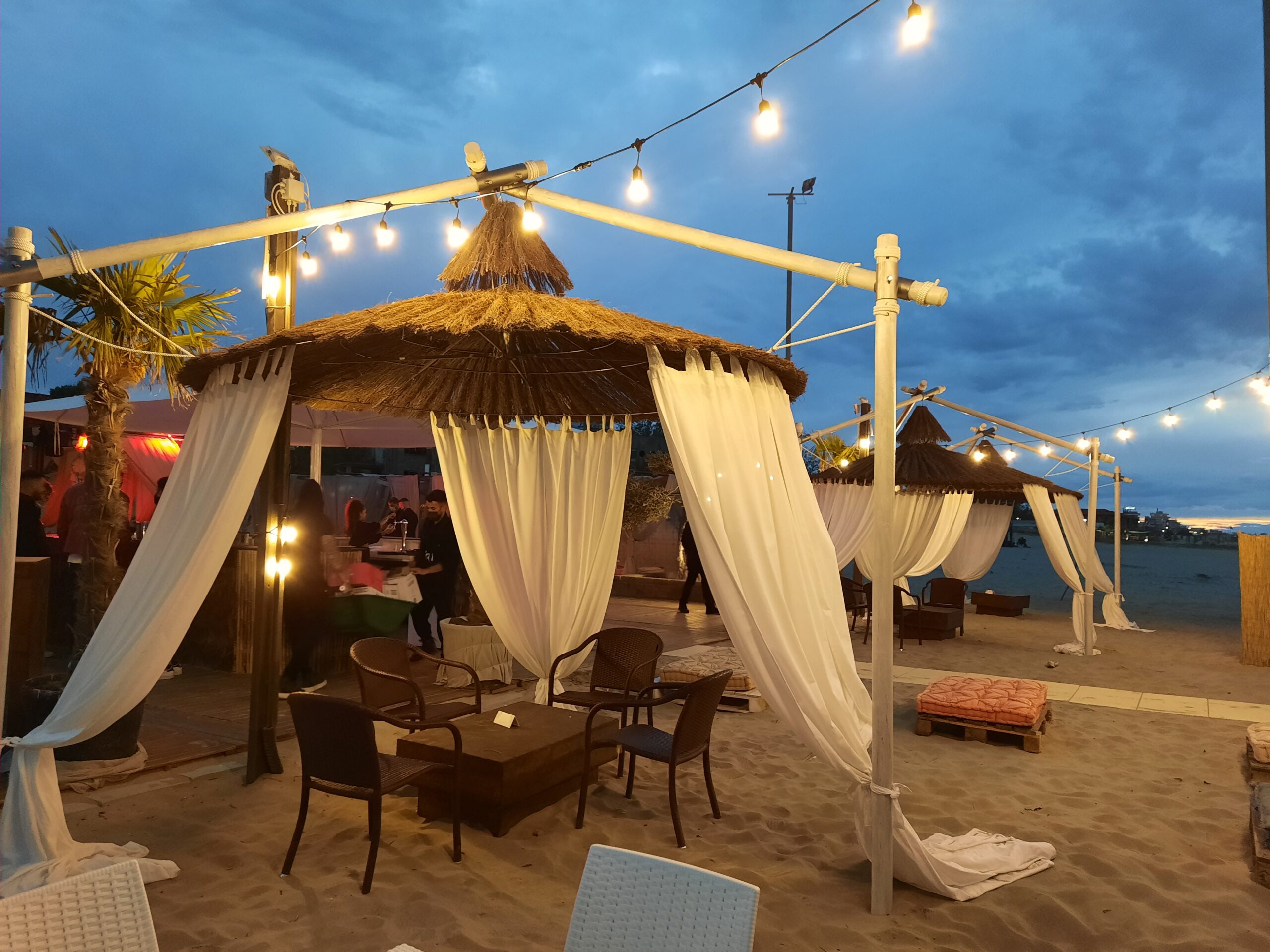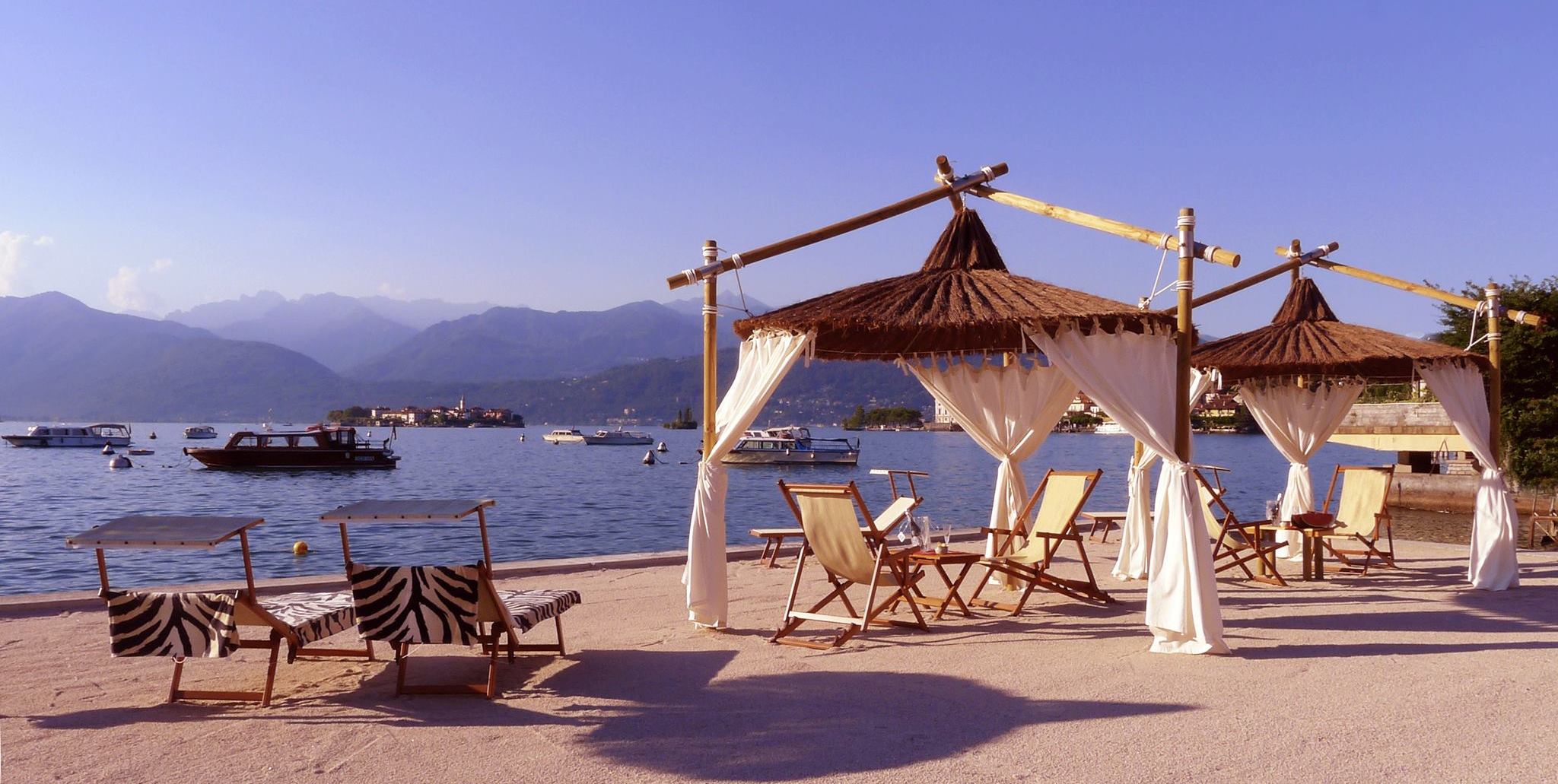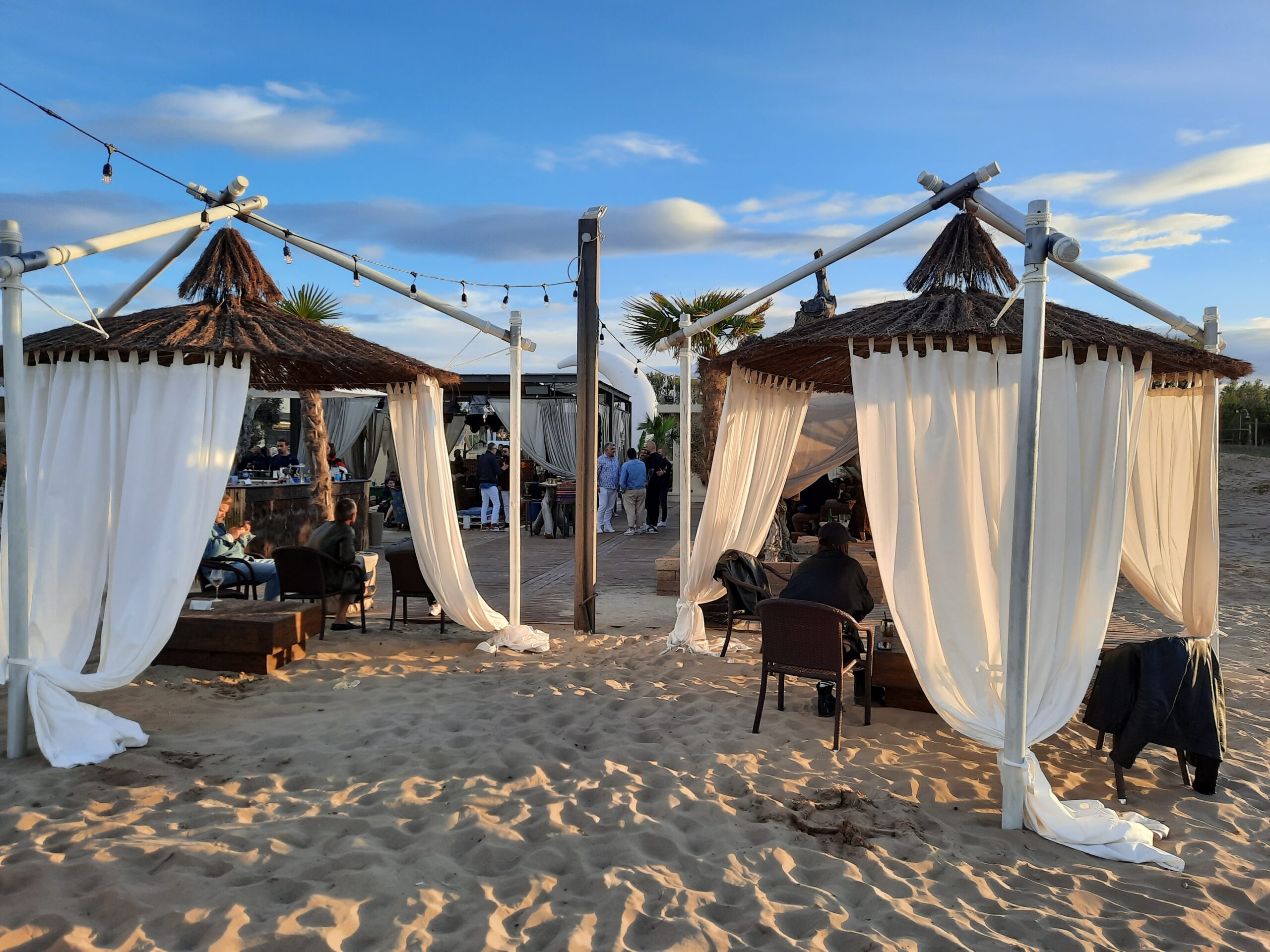 Gazebo Etno-Chic mod. Versilia 600 cm ingombro totale con ombrellone 520 (N°6 Tende in cotone 140 x 300 optional)